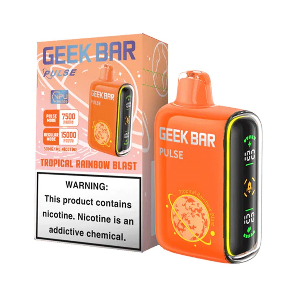 \nGEEK BAR PULSE 5% NIC 15000 PUFFS DISPOSABLE - TROPICAL RAINBOW BLAST