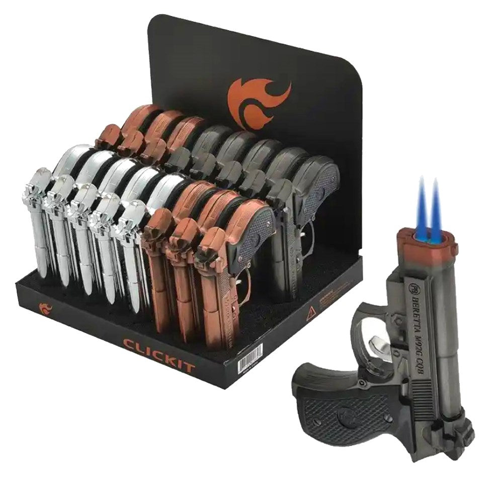 CLICKIT LARGE PISTOL DOUBLE TORCH LIGHTER