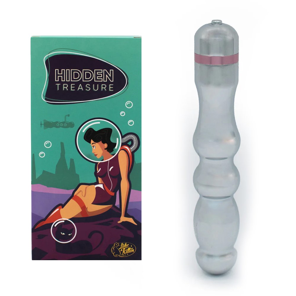 Discover new depths with Hidden Treasure! Submerge yourself into an ocean of pleasure and prepare yourself for the intense waves Hidden Treasure has to offer! \n \nPerfect for solo or partner play, Hidden Treasure is fully waterproof and ready to embark on a deep-sea exploration of deep rumbles! Featuring a curvy ribbed silhouette and 10 deep vibration functions, Hidden Treasure can be used vaginally, anally or externally. \n \nPair with your favorite stimulant or supplement for enhanced sensations!
