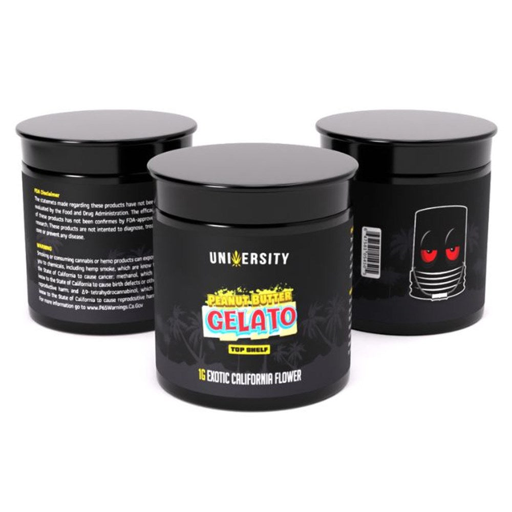 25/JAR \n \nUniversity THC-A Exotic Flower delivers 1g of premium California exotic flower, cultivated to perfection for maximum potency and flavor. Infused with high levels of THC-A, each jar contains 25 hand-selected buds, offering a rich, aromatic experience. Whether you're looking for smooth, relaxing effects or a flavorful smoke, this high-quality flower is perfect for enthusiasts who appreciate the finest cannabis products. Ideal for those seeking a potent and indulgent cannabis experience straight from California’s best growers.
